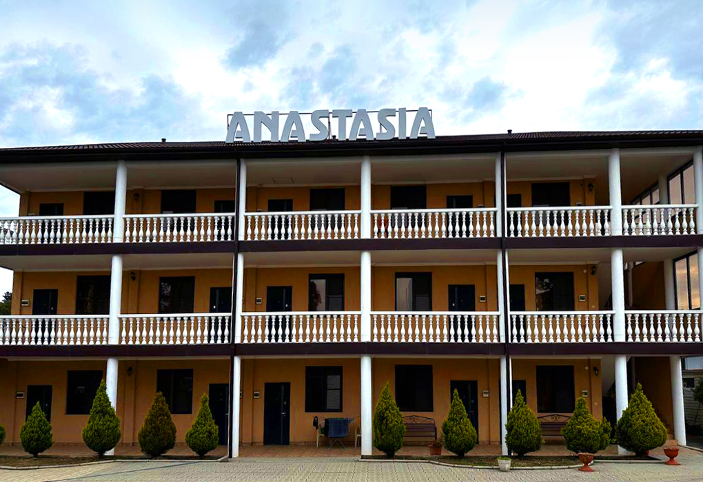 Гостиница «Анастасия» расположен в юго-восточной части Гудауты, вблизи центральной части города. В 2-3 минутах ходьбы находится набережная, неподалеку рынок и продуктовые магазины, в 5 минутах – остановка общественного транспорта. Расстояние до международного аэропорта Сочи чуть больше 80 километров, а дорога до российской границы займет около часа. Трехэтажный корпус отеля разместился на уютной закрытой территории. Жилой фонд, рассчитанный на 15 номеров, предлагает гостям комфортабельные двухместные номера, с возможностью размещения дополнительных мест. Все номера оснащены балконом, индивидуальным санузлом с душем, в комнатах есть кондиционер, телевизор, двухспальная или раздельные кровати. На территории работает столовая, где отдыхающим готовится горячий завтрак и ужин. Для детей оборудована игровая площадка. Среди услуг — небольшая автомобильная парковка во дворе, беспроводной интернет, пользование стиральной машиной и утюгом. В 3 минутах ходьбы находится городской галечный пляж. На побережье установлены раздевалки, можно арендовать лежаки, шезлонги и зонтики.