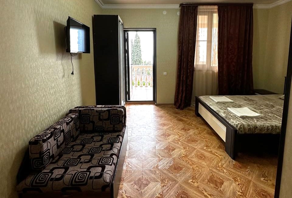 Площадь номера - 18-25 кв.м. 2 осн. места. 2 доп. места. Балкон. Мебель: вешалка, зеркало, кресло-кровать, кровати односпальные /одна двуспальная кровать, прикроватные тумбочки, столик журнальный, шкаф. Оборудование: кондиционер, телевизор. Санузел. Сервис: Wi-Fi бесплатно, смена полотенец, смена постельного белья, уборка номера.